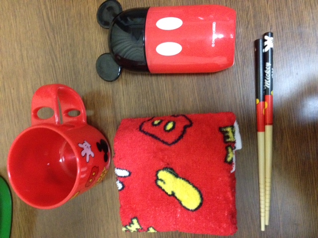 コップもおしぼりも幼稚園用に7個持ってますが、ミッキーが仲間入り♬