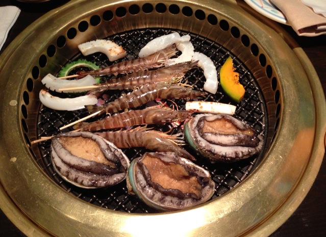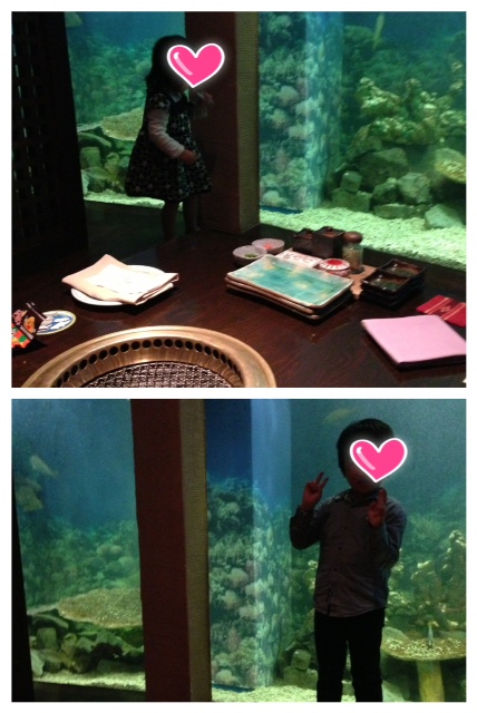 夕食は☆ 沖縄8 2013.03.16 夕食はお魚の見える場所で炭火焼きです☆ 私も母も豚肉が苦手なので、海鮮にしました♫ 大好きな鮑や活き車海老などなど。 沖縄料理は唯一?食べれる海ぶどう、モズクの天ぷら、紅芋をいただきました☆ 子供達はまたまた目の前の魚に釘付けです(≧∇≦) iPhoneから送信