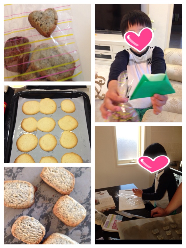 主人が金曜日に私が以前試着していたルネのワンピを2枚と、アレクの新作バレッタ2つをサプライズで買って来てくれたのでそれで十分だったのですが、なんと息子と二人でクッキーを作ってくれました☆(#^.^#)
