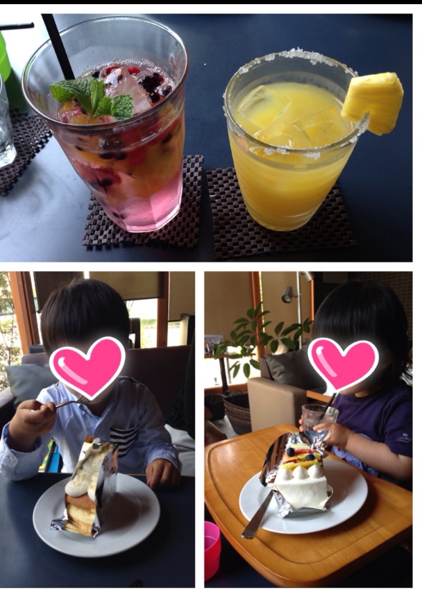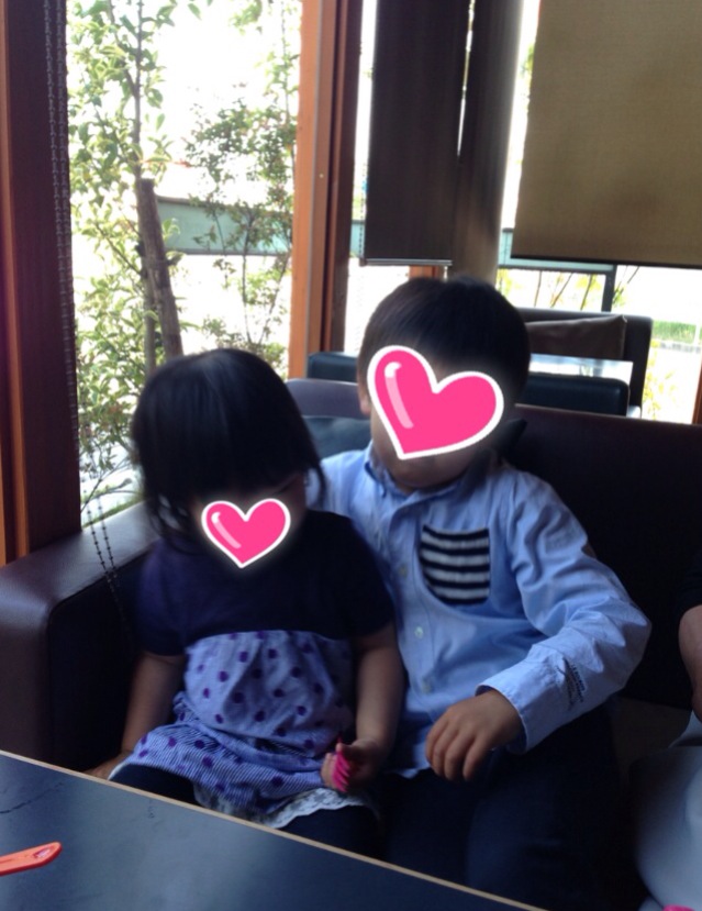 息子の幼稚園が終わって、バイオリンのレッスンの後は4人でカフェへ!