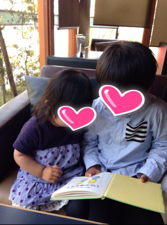 いつも、仲良しの二人。お兄ちゃんは妹に本を読んであげてます。優しいお兄ちゃんで良かったね(#^.^#)