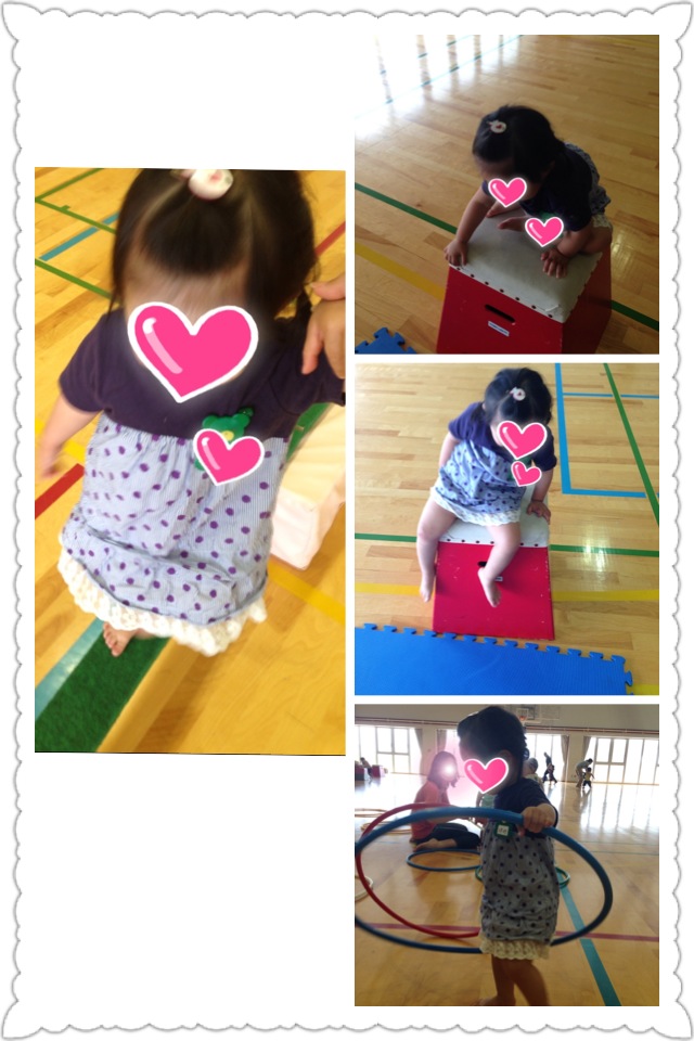 跳び箱、平均台、フラフープ、トランポリン、どれも楽しそうに遊んでました♫