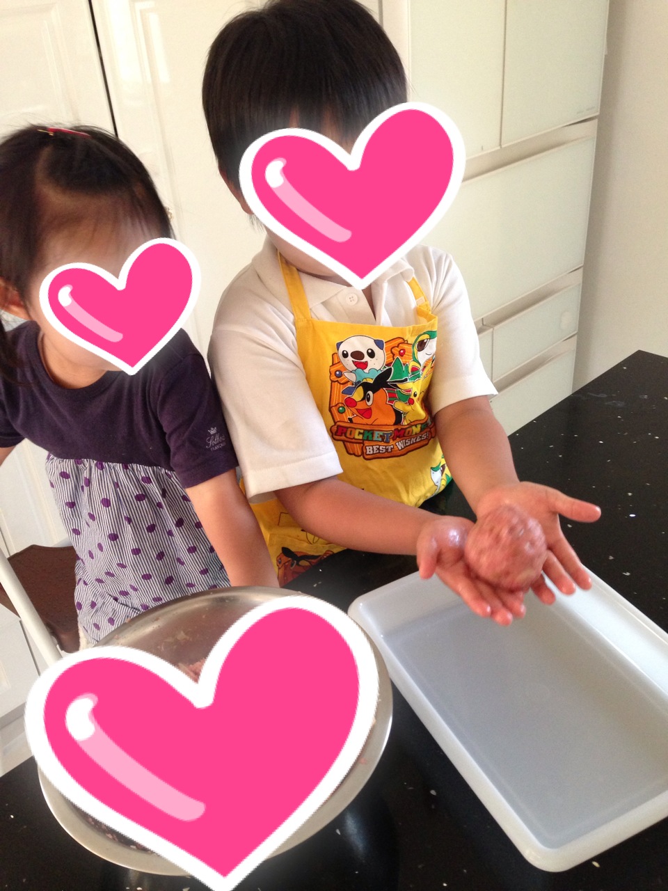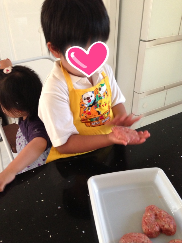 今日は息子がハンバーグ作りを手伝ってくれました。ママにハート♡のハンバーグ作るーと言って作ってくれましたよ♡