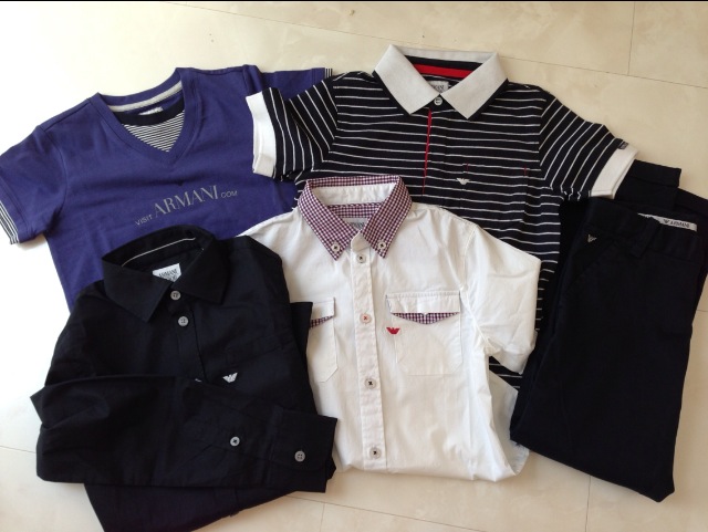 お写真は昨日買った子供服で、どれもとっても気に入ってるので大満足です♡息子は全部アルマーニ。娘は一枚アルマーニであとは全部トッカです。