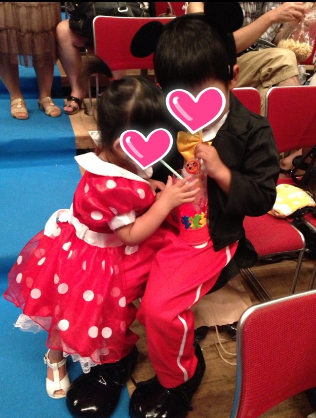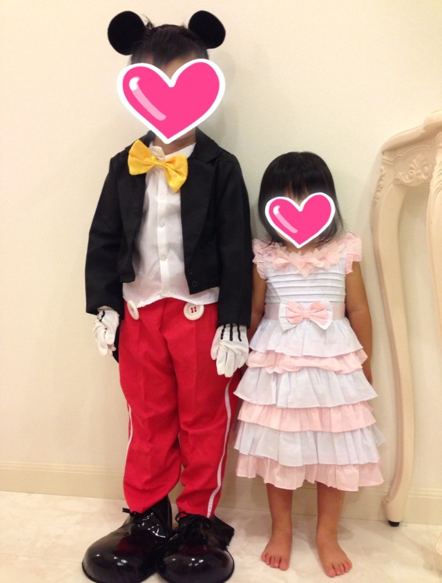 娘はドレスを用意したのですが、息子がミッキーならミニーと言う事で合わせました。