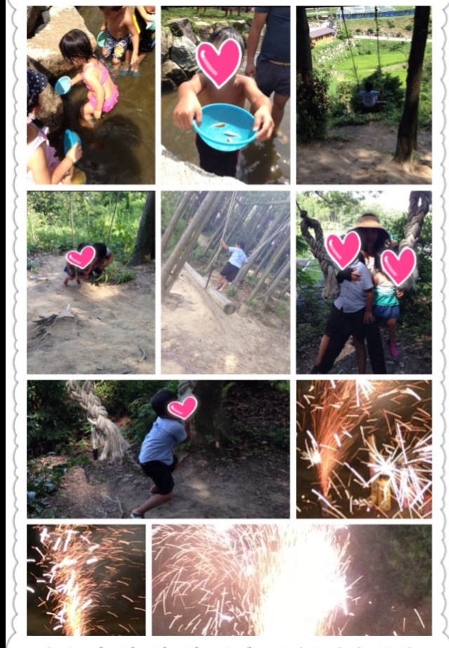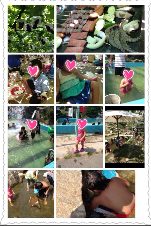 ぶどう狩り&BBQ♫ 2013.08.13 お盆休みの初日の今日はぶとう狩り〜☆甘いぶどうを食べた後はBBQ!食材の持ち込みもOKなので、朝からおにぎり作って準備しました♫ プール遊び、川遊び、魚つかみ、アスレチック、卓球、大きなブランコなどなど(^-^)たくさんあそんだ後はまたぶどうを食べて楽しかったぁ〜☆ 夜は花火もして今日も楽しい一日になりました☆*:.。. o(≧▽≦)o .。.:*☆ iPhoneから送信