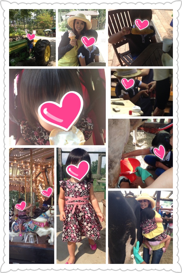 旅行☆Part4 2013.08.16 今日は高原や牧場で遊んで来ました♫ 息子が電動ドリルで木の犬作りに挑戦したのですが、先生が厳しくてちょっと笑えてしまいました(^^;; 美味しいソフトクリームをたくさんたべたり、牛の乳搾り、アイスクリーム作り、乗馬などなど、たくさんあそんで来ましたよ〜☆以前少しですが、乗馬に通ってたので懐かしくなりました。息子も一人で平気だったし、娘は初めてでも怖がらずに乗れました(^-^)私、馬って好きなんです♡また行きたいなぁ〜☆ iPhoneから送信
