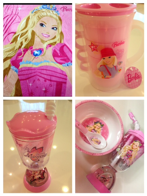 それと、最近娘のグッズではまってるバービー!はじめはストロータイプの水筒を探してたのですが、可愛いくてバービーグッズ集めてます。