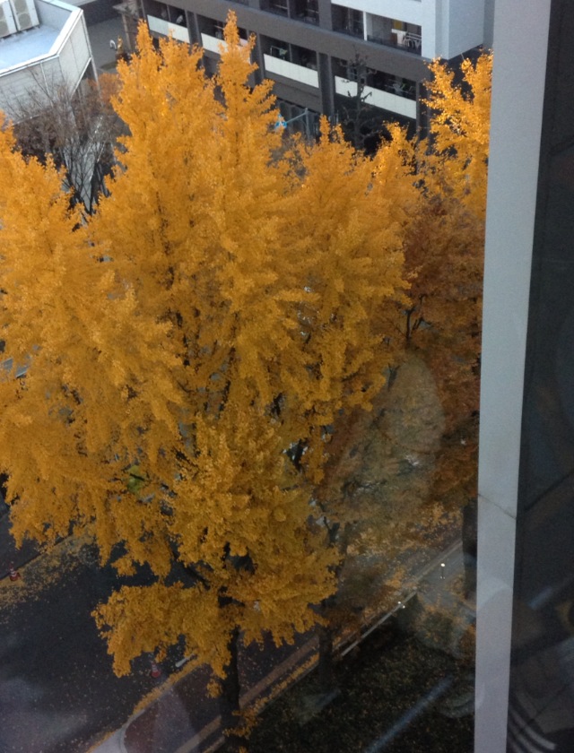 そういえば、プラネタリウムの入口の窓を見たら、イチョウがすごくキレイでした♡こんなにキレイになるんですね。