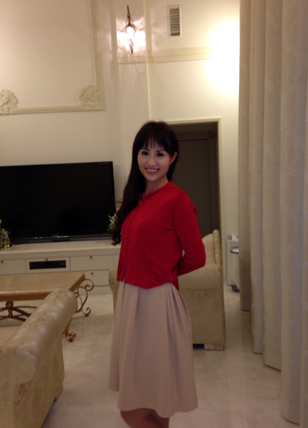 赤のカーディガン。両サイドにリボンがついてて、わかりにくいですが、パーカーです。他にも色々あってお値打ちで可愛いのでカーディガンは3枚買いました☆