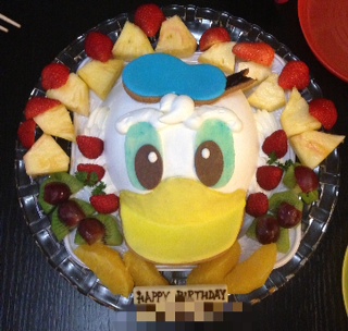 私達はスパークリングジュースでお祝い!簡単に食事をすませて、メインはドナルドのケーキ♡