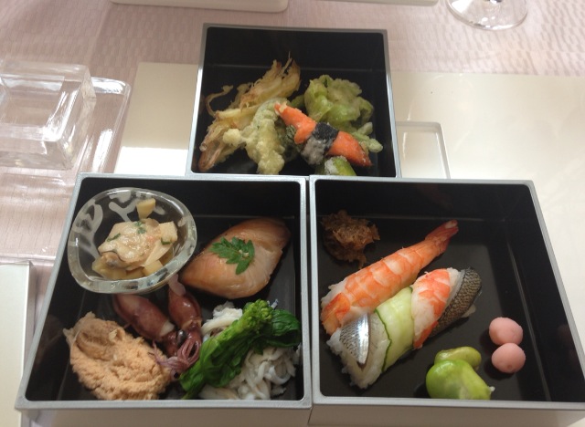 豪華な3段重に加え、ミルフィーユ風チラシ寿司、揚げ物、お椀、メインのお肉、デザートもあって、豪華過ぎるメニューでした。