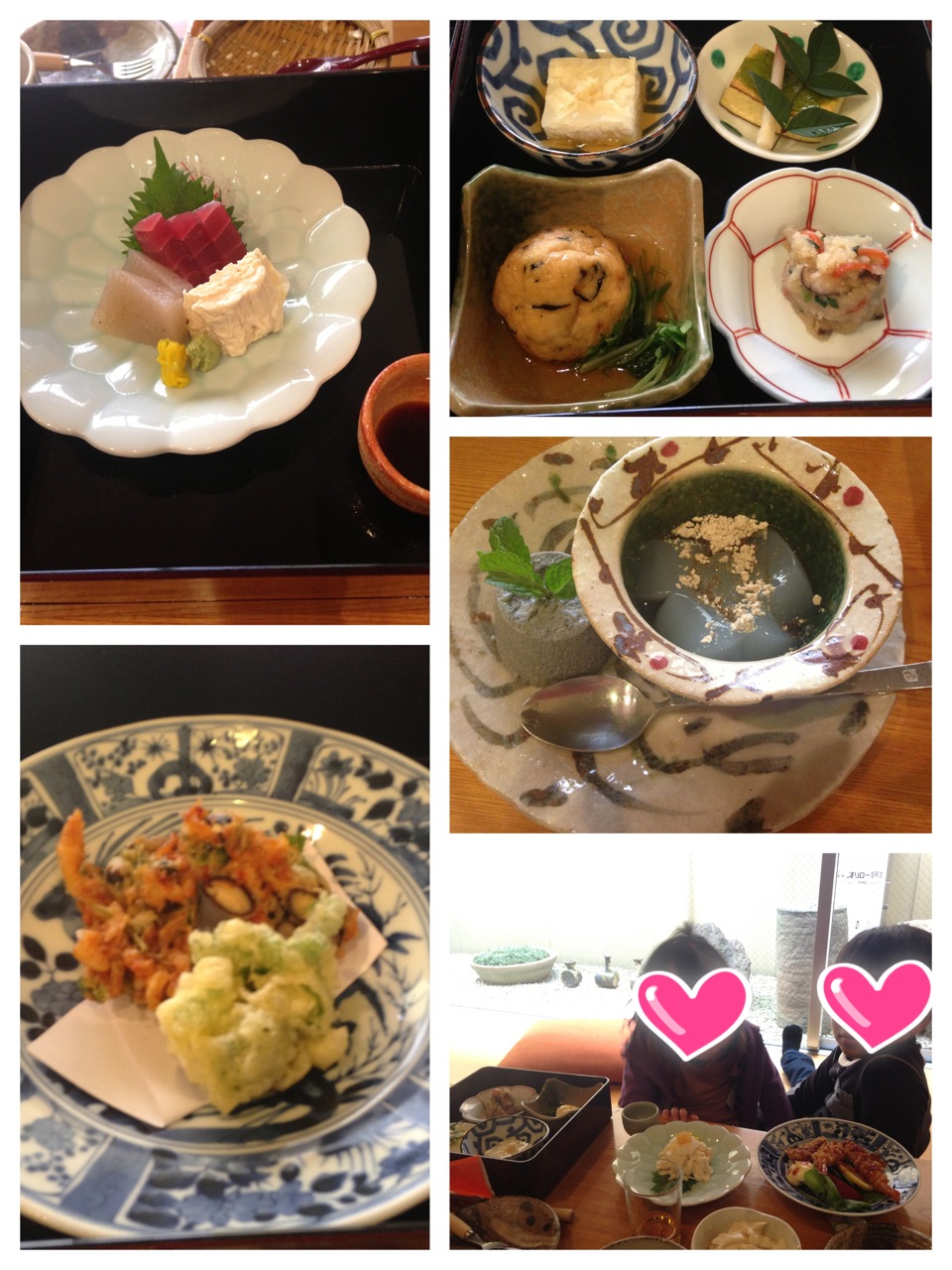 ランチ〜お花見☆ Part2つ 2014.04.01 今日は昨日より暖かいですね。 鶴舞公園にお花見に行って来ました♫ 桜の木の下を子供達とお散歩してると、娘も桜、桜と喜んでました。 本当に満開で、すぐに散り始めそうなのでしばらく雨が降らないでいてくれるといいなぁ〜☆ 母も一緒だったので、お昼はお豆腐のくすむらさんへ! 美味しいくみあげ豆腐をいただいて、他のお料理をいただいたらお腹いっぱいになってしまいました。美味しいちりめんご飯もおかわり出来ない程…。早めのお昼だったからかなぁ〜。またゆっくり行きたいです。 iPhoneから送信