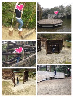 その後は息子が楽しみにしてたアスレチック!子供連れの家族と言うより若い、大学生くらいのグループも多かったです。女の子グループもいたり、大人の男の子人でも苦戦してる本格的なアスレチック!