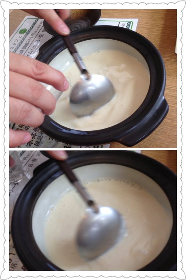 目の前で豆乳ににがりを入れてくみ上げ豆腐を作ってくれました♫