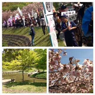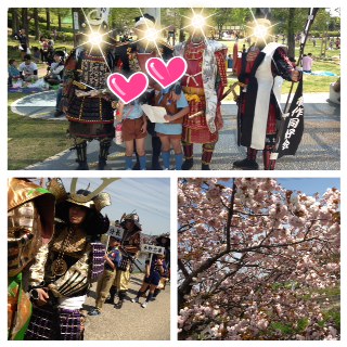 丁度集合場所の公園で祭りがあったのですが、何百人もの戦国武将の大名行列がいました☆