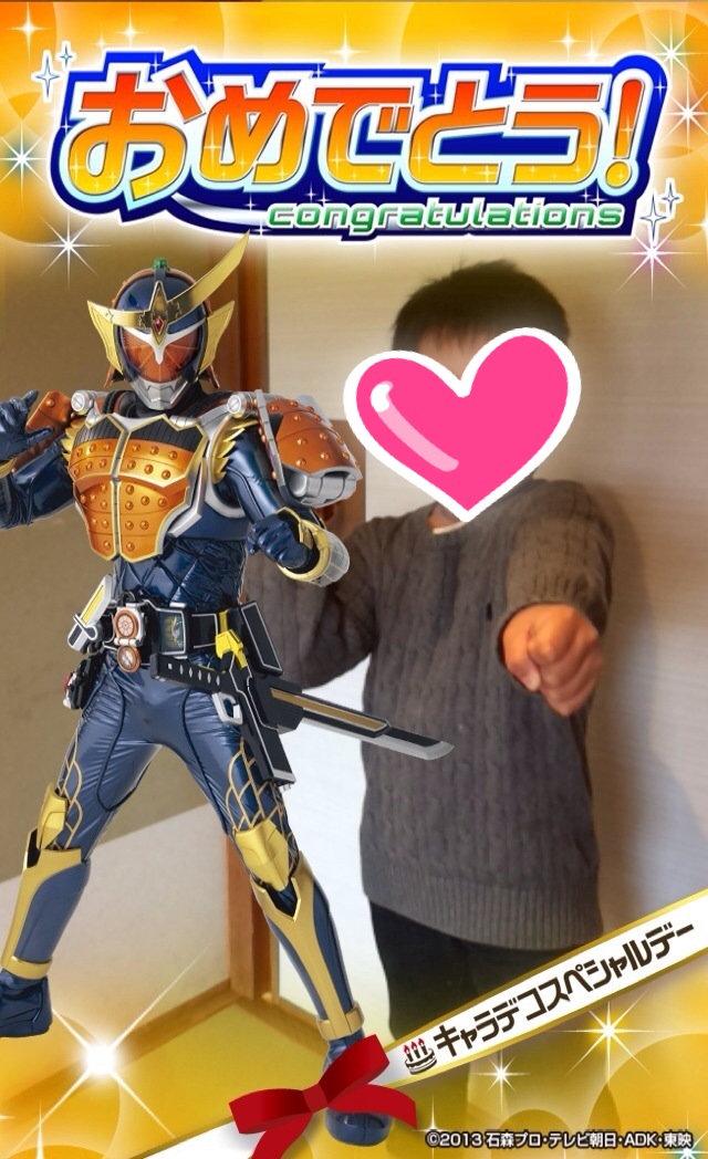 蟹しゃぶ☆ 2014.04.20 今日は寒かったですね。昨日までの暖かさが嘘のよう…。 お昼に蟹しゃぶを食べましたが、暖かくて美味しかったです☆ 息子は入学のお祝いに仮面ライダーガイムのケーキをいただいて、大喜び♡ キャラデコケーキにガイムと一緒に写真が撮れるのも付いました♫ iPhoneから送信