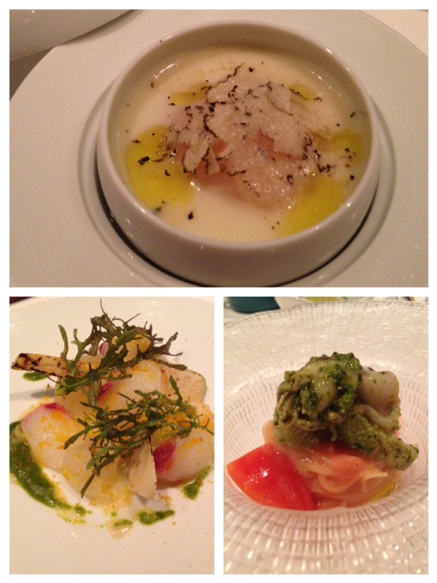 大好きなマンゴーとフォアグラは必ずいただきます。一皿追加して、スモークしたタケノコと桜鯛のカルパッチョもいただきました。主人のホワイトアスパラのパンナコッタもすっごく美味しかったです!