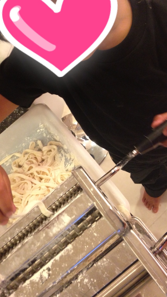 夜は母の日なので子ども達が私の大好きなおうどんを手作り!パスタマシーンで、きしめんのようにカットして出来たてをいただくと、ツルツル、もちたもち☆美味しかった〜♡