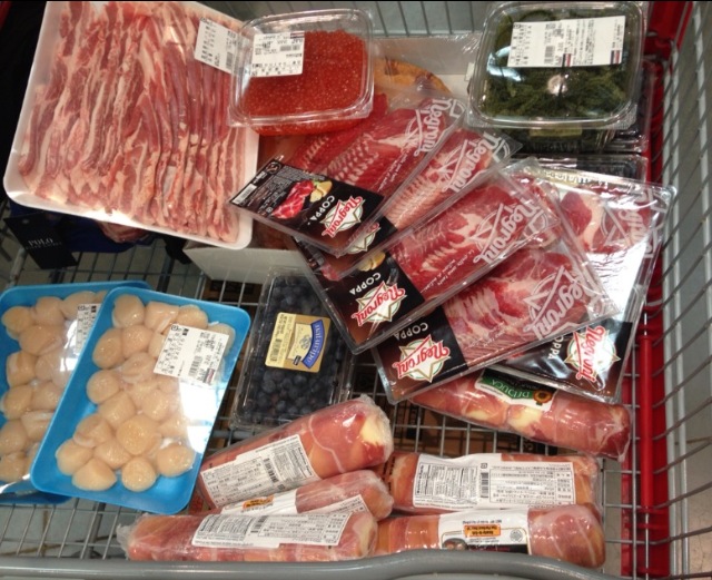 とりあえずいつも買う、ブルーベリー、生ハムと言うかサラミ?イクラ、ホタテ、などなど。今回初めてモッツァレラの生ハム巻の試食を食べて美味しかったので、日持ちもするし6個も買って来ました☆お酒飲みませんが、お酒に合いそうですよ!