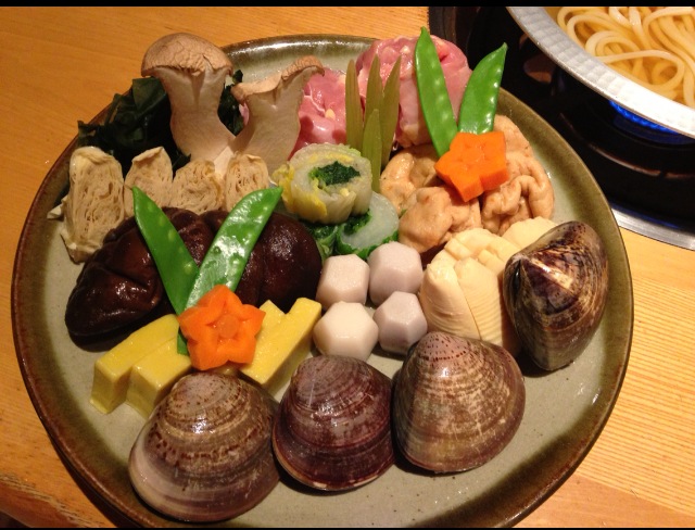 真っ暗にならないと見えないらしく、ピークは8時ごろなので、まずすきうどんをいただきました。すきうどん大好き♡