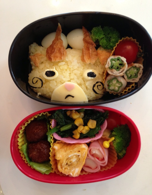 最後に、台風の影響で昨日今日お弁当でした。息子と、キャラ弁は幼稚園までだよと、約束してたのに、息子のどうしてものリクエストに久しぶりのキャラ弁。小学校は朝早いのでバタバタ。昨日はジバニャンを作ったのに、写真をとる時間がないほどギリギリに。