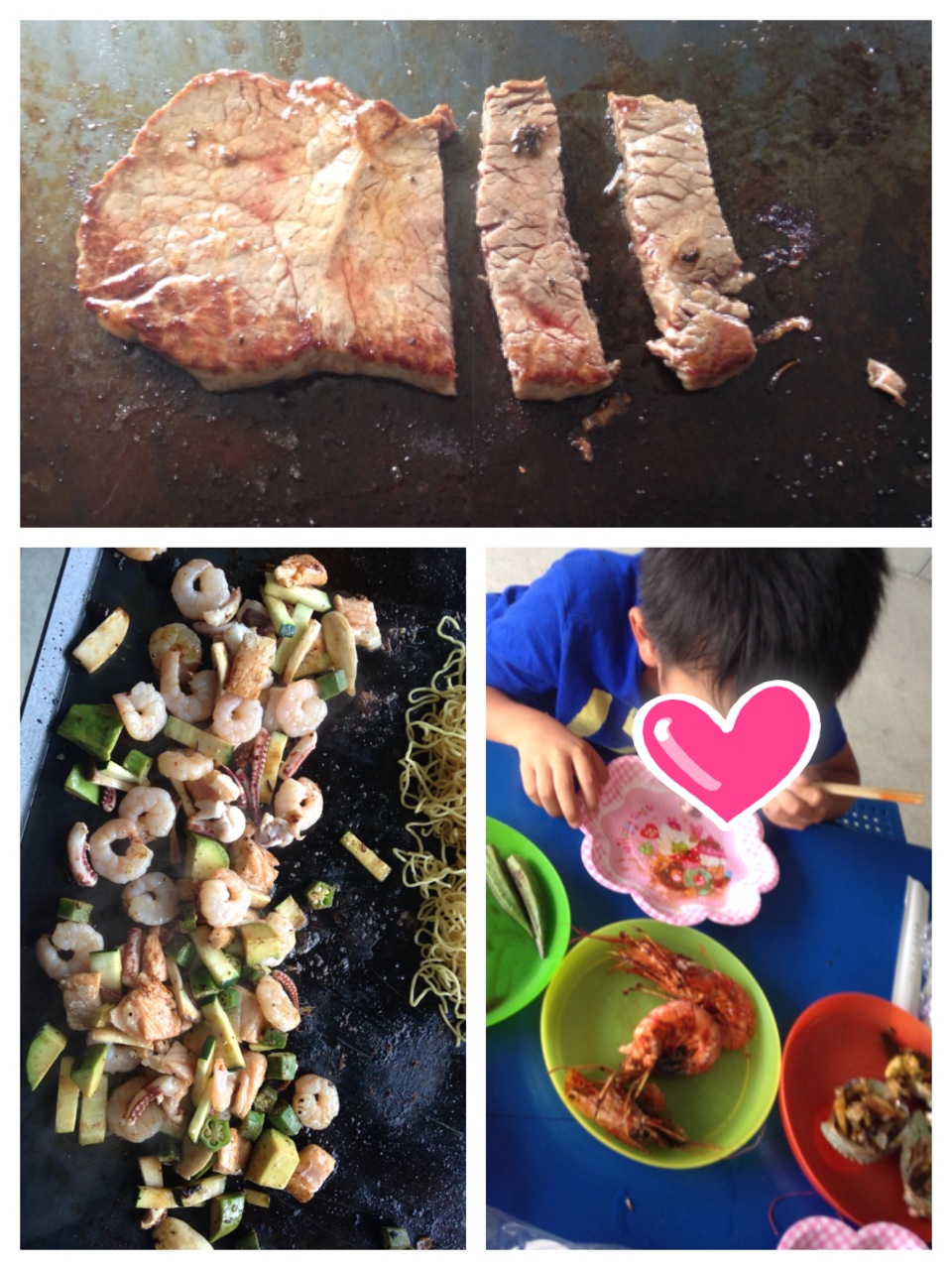 主人がBBQと言ってたのですが、オーダーした鉄板で主人がシェフになってくれました〜☆
