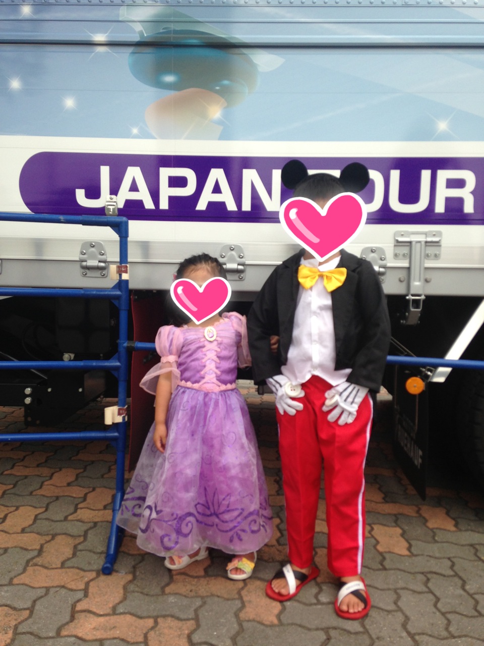 娘はラプンツェル。息子は大きくなって来たので私服のつもりが、またミッキーが着たいと言ってたので、現地でお着替え☆本人が着たいと言ってくれるうちはまぁいいかぁ〜♫