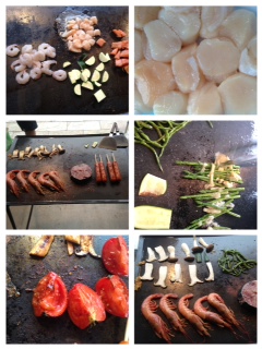 今回も全ての買い出しから準備を主人がしてくれて、またまたシェフになってくれました♡野菜から始まり、大好きな鮑、エビ、肉、締めはお刺身のホタテやエビなど入れて、ホタテの水煮缶を出汁にした海鮮焼きそば!