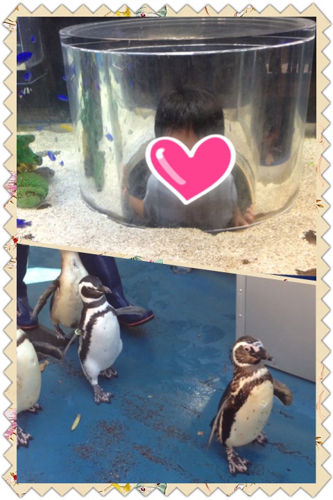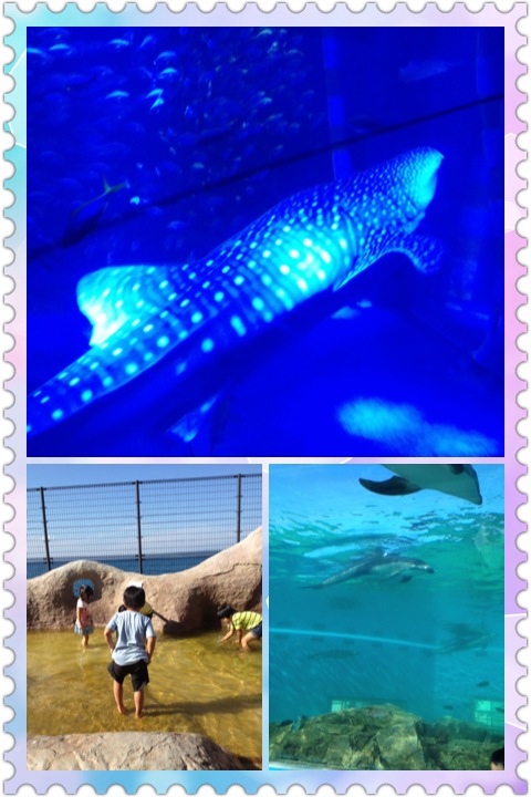 (青の世界)と言うジンベイザメのいる館はとても幻想的ですごくキレイ☆水槽も透明度が高く海の中にいるような錯覚をしてしまいそうでした。