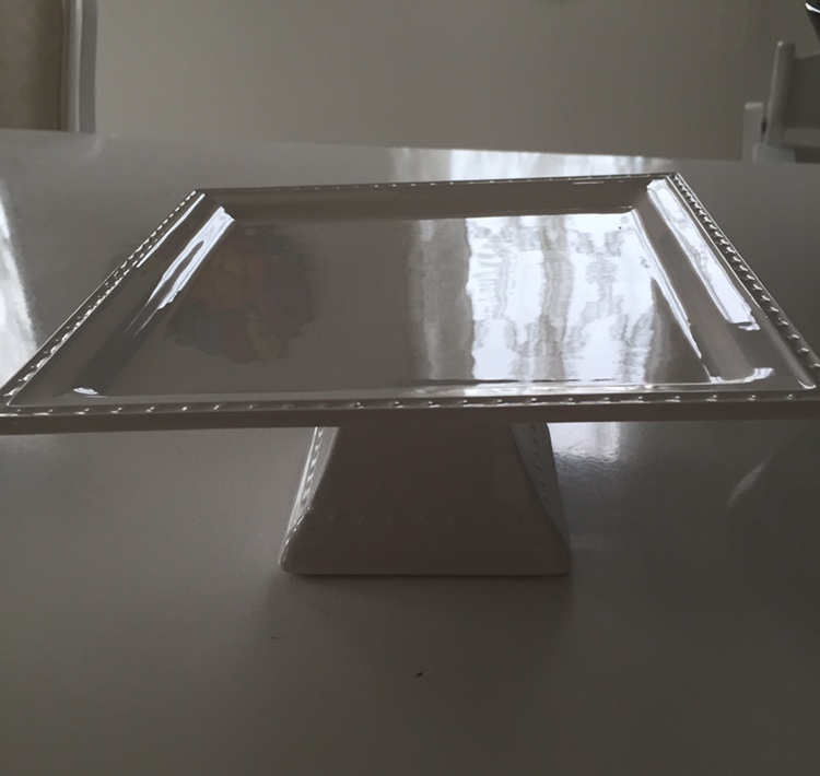 もう一つ、白の高さのあるプレート。こちらは小ですが、大も 長方形も持ってます。フルーツを飾るだけにもいいし、お料理、デザートなど、多方面に活躍してくれます!