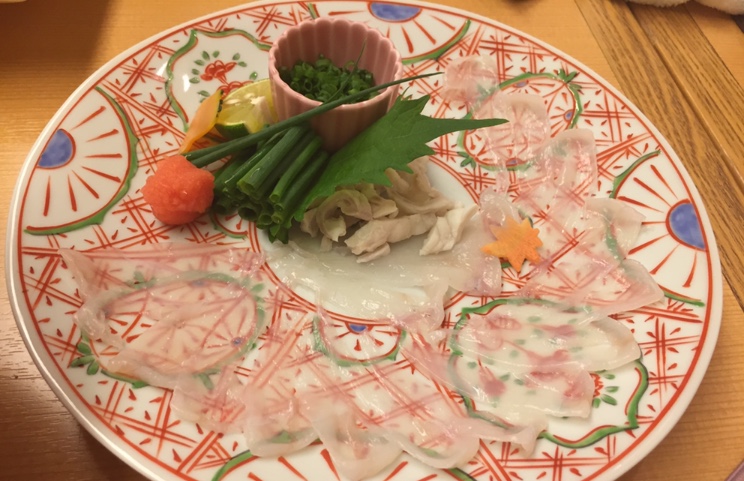 フグが始まってて、大好きなてっさをいただきました♡他の物もあったので、お腹いっぱい。
