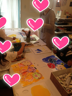 本当は一人づつ習った方が良いそうですが、なんとか4人でお願いしてみんなでお絵描きしたのですごく楽しそうでした(*^^*)