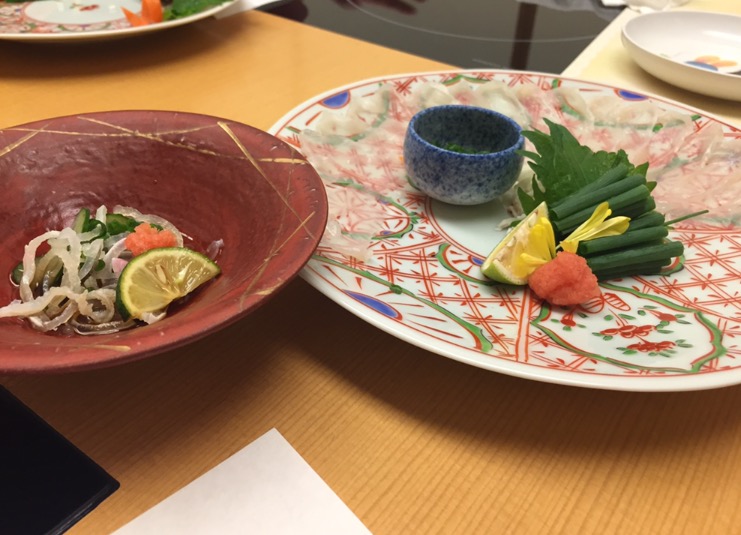 結局そのうち雪も止んで、主人も雪の為にいたので、主人と近くにランチに出かけました♫寒かったのでフグコースに!