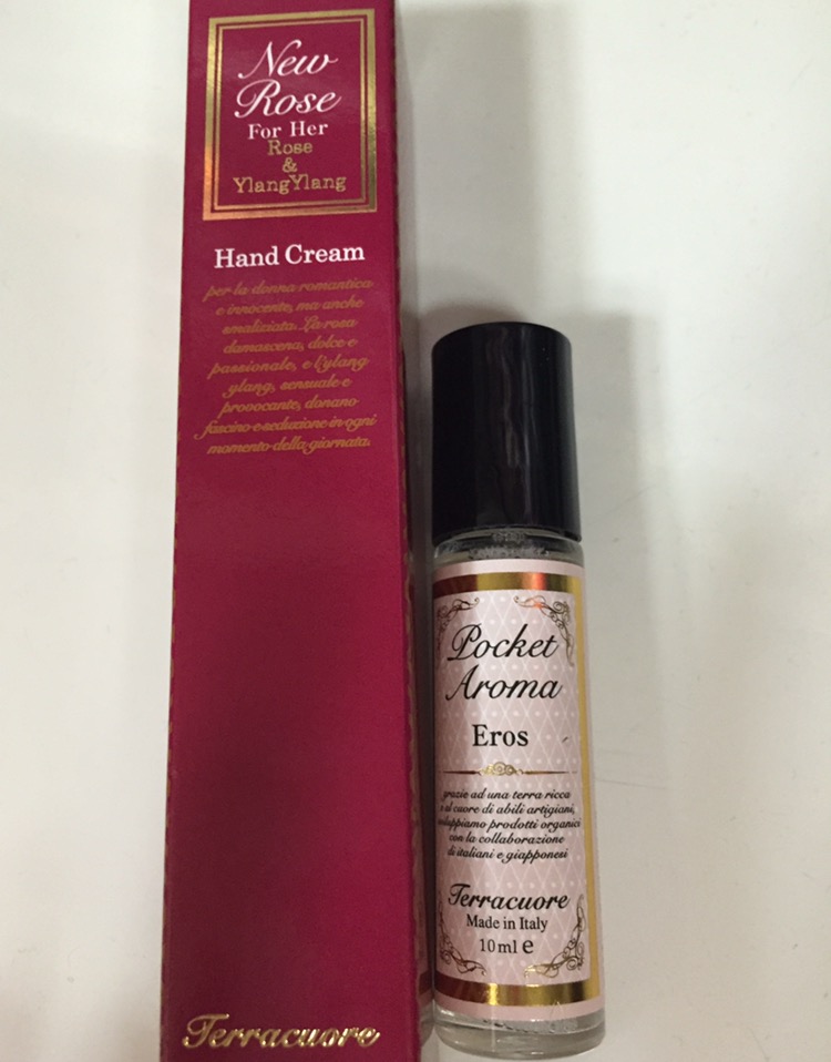 こちらもステキなプレゼント♡ハンドクリームと、ポケットアロマもいただきました。ハンドクリーム、大好きなダマスクローズとイランイランの香りで癒されます。すごく好みな香りでした☆ステキなプレゼントありがとうございます♡