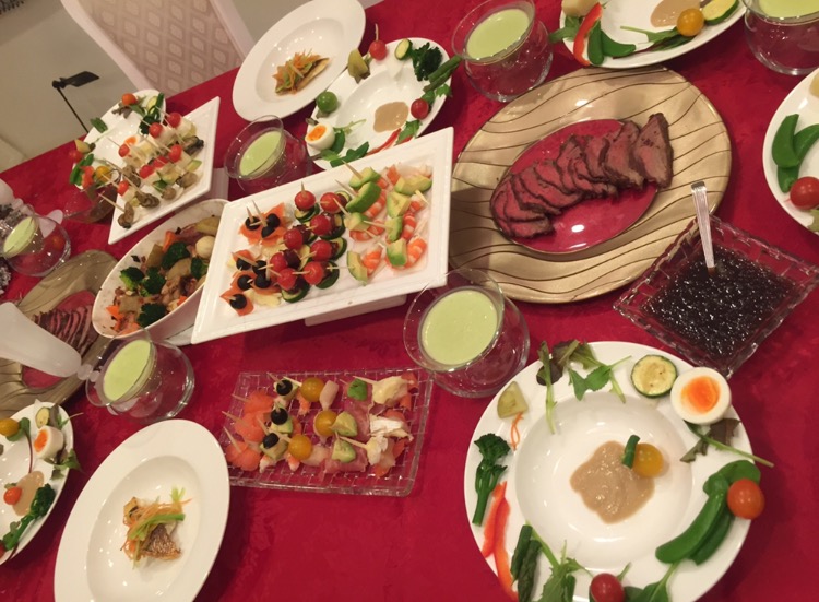 バタバタだったので、ゆっくり写真も撮れず、これに仕上げの真鯛のポワレのソース、パン、カトラリーなどを用意して仕上げましたよ。
