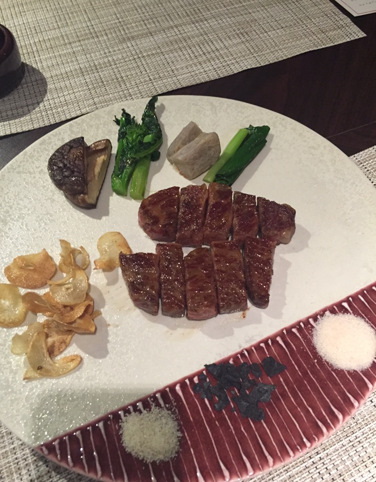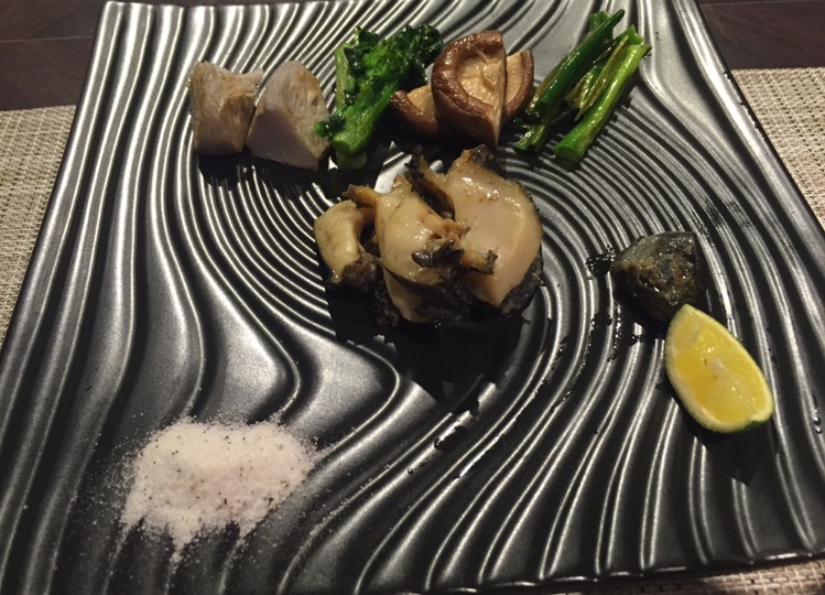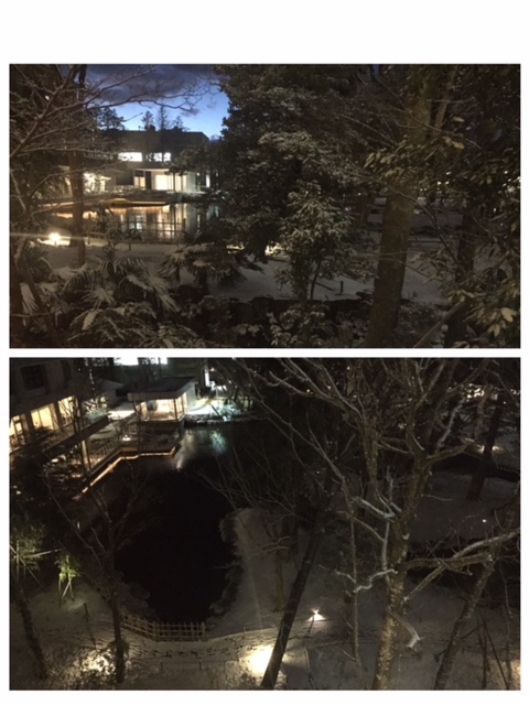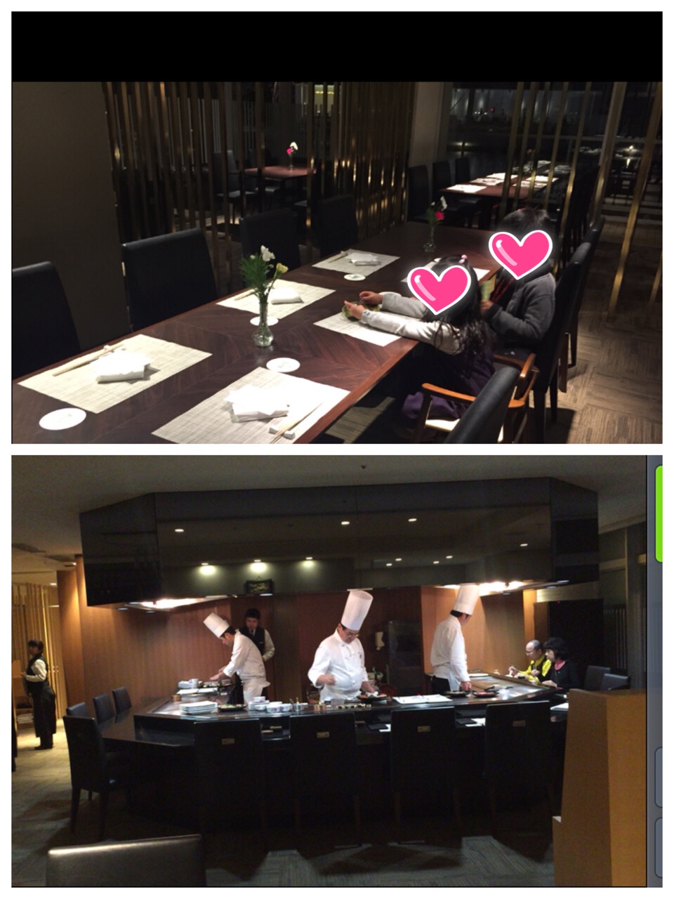 元旦のディナーは♡ 2015.01.03 のディナーはホテルの鉄板焼き♡ 6人だったので、カウンターではなく、テーブルでいただきました☆ 先付けから始まり、大好きな海鮮がたくさん♡ 蛤、金目鯛、伊勢海老、鮑♡鮑もすごく柔らかくて美味しくて感動でした。元旦から大好きな物がたくさん食べれて幸せ♡ ホテルは2千坪のお庭に雪が積もってとても綺麗でした! お部屋にも源泉の内風呂があってお風呂からも、お部屋からも雲ひとつないキレイな富士山がみえて、元旦から嬉しかったです♫ iPhoneから送信