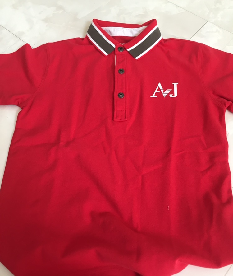 息子はアルマーニ!この夏は赤のポロシャツに赤のパンツ!合わせて着るわけではわないですが、夏に来て欲しい色です☆