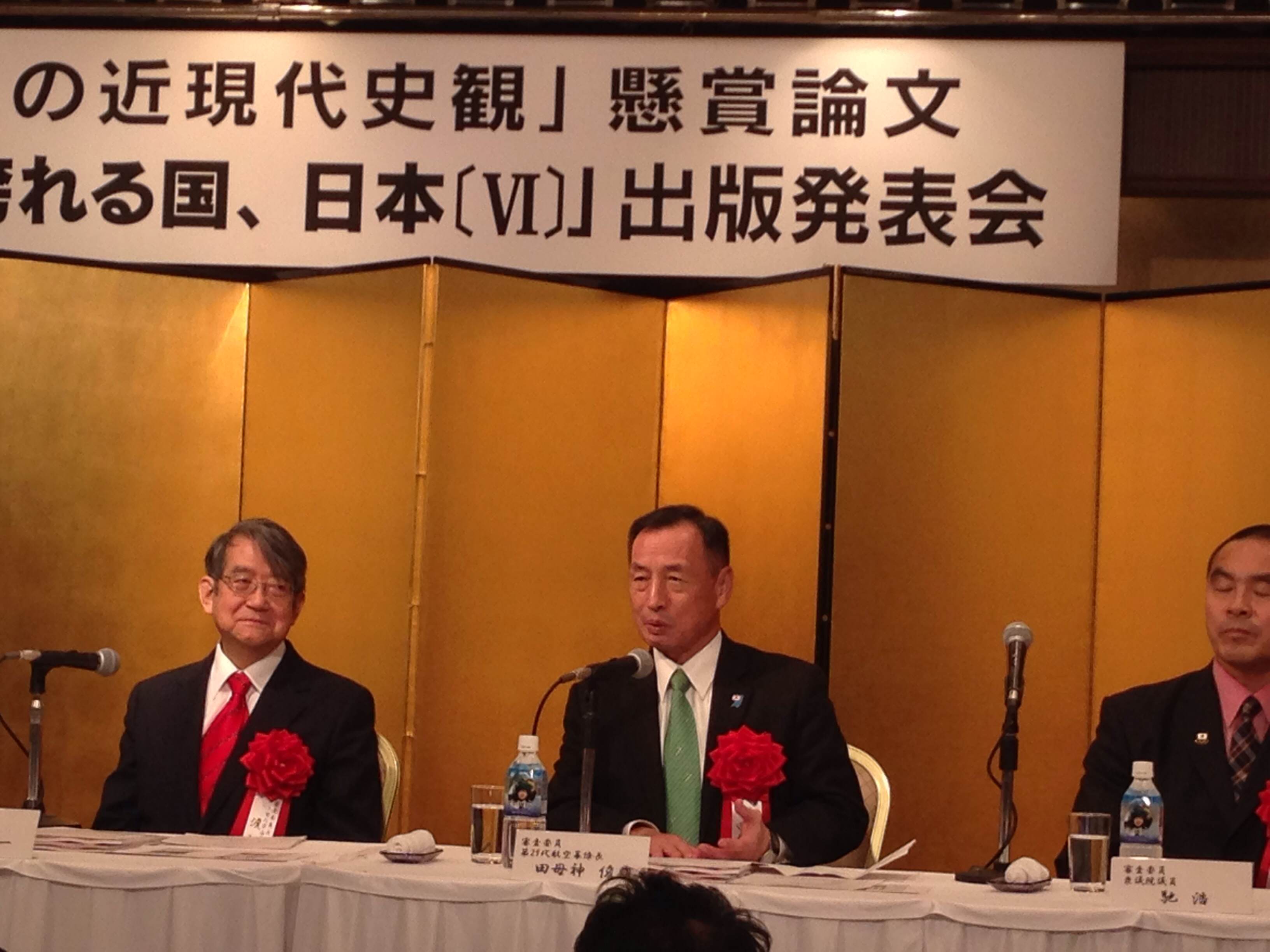 アパグループ出版パーティー 2013.12.07 昨日の 第六回「真の近現代史観」懸賞論文 受賞作品集「誇れる国、日本 VI」 出版発表会と後の出版パーティー 審査委員 29代航空幕僚長 田母神 俊雄さん 審査委員 報知新聞社前会長 小松崎 和夫さん 審査委員 衆議院議員 馳 浩さん 最優秀受賞者 衆議院議員 松原 仁さん 田母神さんご無沙汰しています!素敵なお話ありがとうございました!お疲れ様
