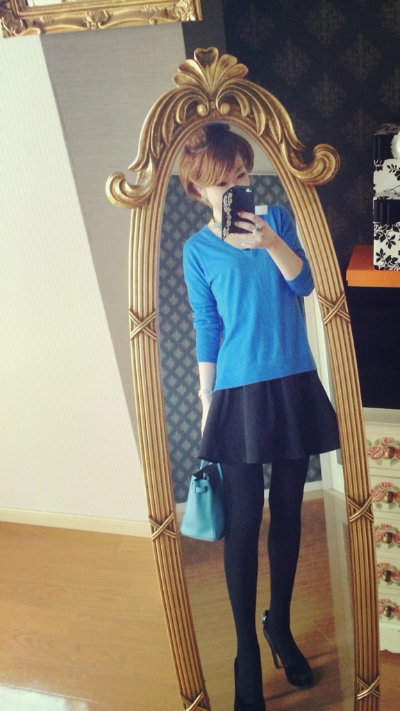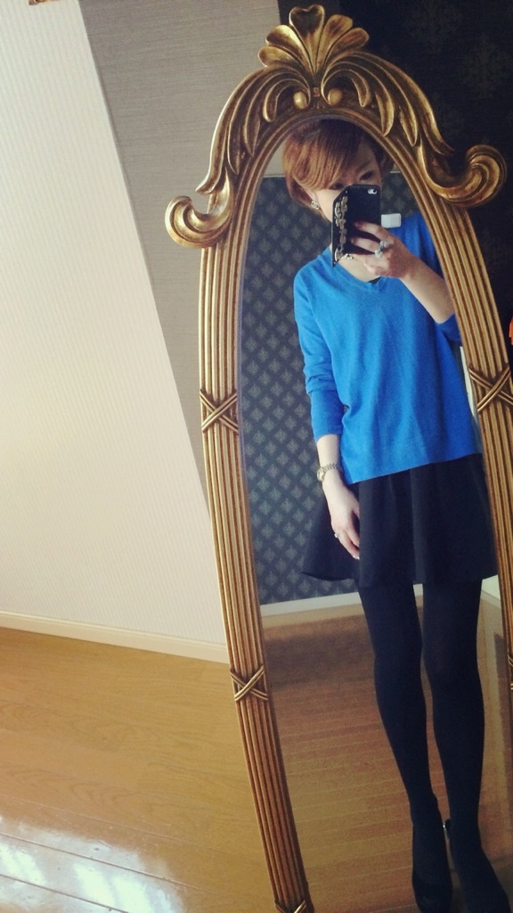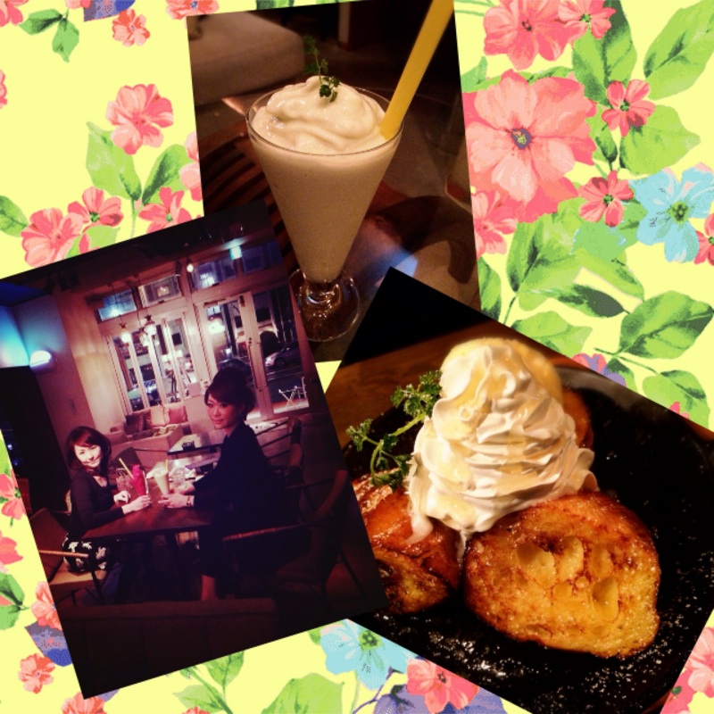 ブルー 2014.03.14 今日のコーデ(⌒▽⌒) 綺麗なブルーのニット! あと、昨夜食べた こちら フランスパンのフレンチトースト アボカドバナナスムージー かなり美味しかったです。 猿カフェにて。