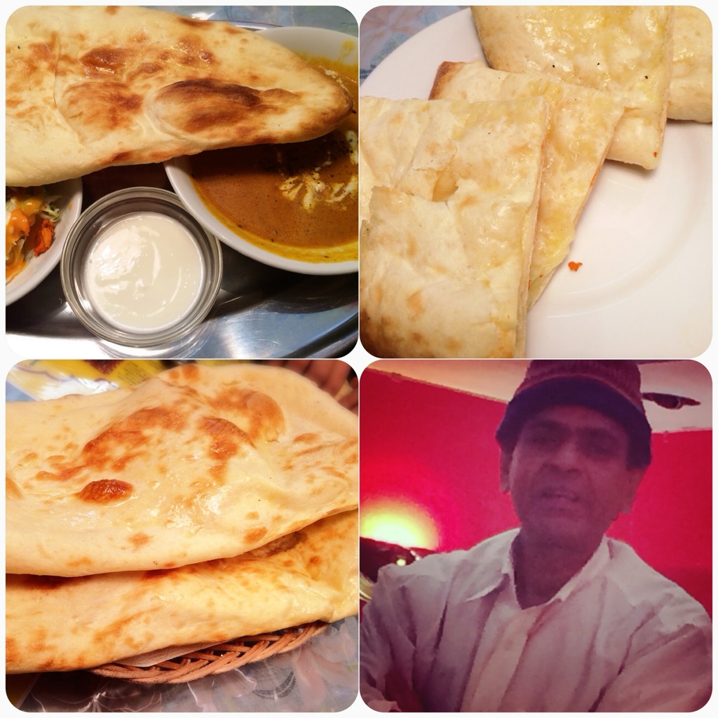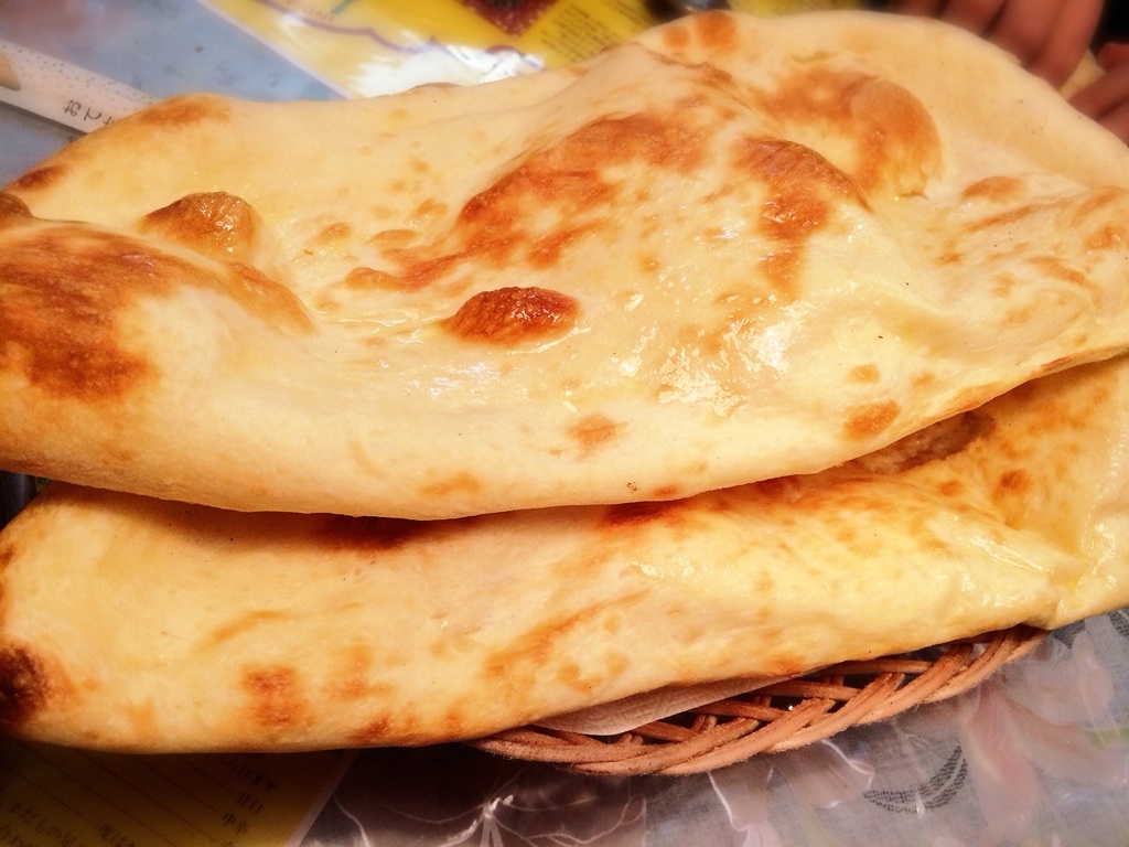 休日ディナー@近所のインド料理屋さん 2014.03.16 今日のお夕飯は、 前々から気になっていた近所のインド料理屋さんへ。 店内中、スパイスたっぷりな香りで、オーナーの方もとっても気さくな方! バターナンが、これまた最高で、3枚も頂きましたよ! チーズナンも、想像通りの美味しさ!! また、次回はお友達とランチで伺いたいなぁ。 ナンの生地!最高〜!