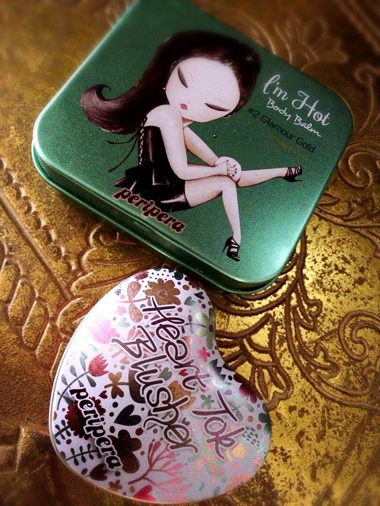 韓国コスメ! 香りがいいので、わたしは韓国に行くと必ず何か購入します。 ハートのケースは、チーク。 グリーンのケースは、練り状の日焼けクリーム。キラキラ感もありGOOD〓