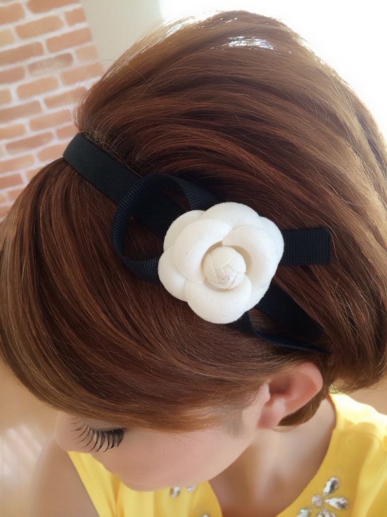 NEWネイル 2014.07.02 今回は、お上品さを感じたくて こんな感じに↓ ホワイトカラーは、女性らしさを引き出してくれます。 そして今日のコーディネート。 ロリーズのグログランリボンのヘアーゴムを私はブレス代わりに! お上品ベージュ ヘッドアクセサリーも、エレガントさを最大限に引き出してくれるカメリアモチーフ。