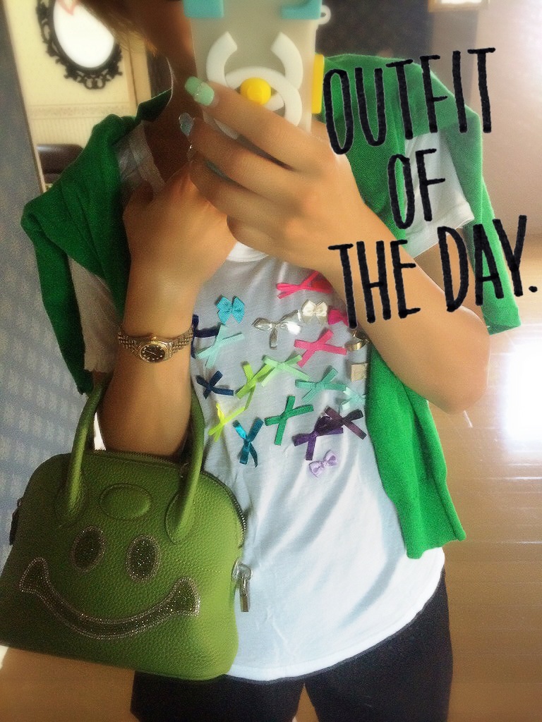 今日のコーディネートは、 大好きなグリーンを取り入れました。