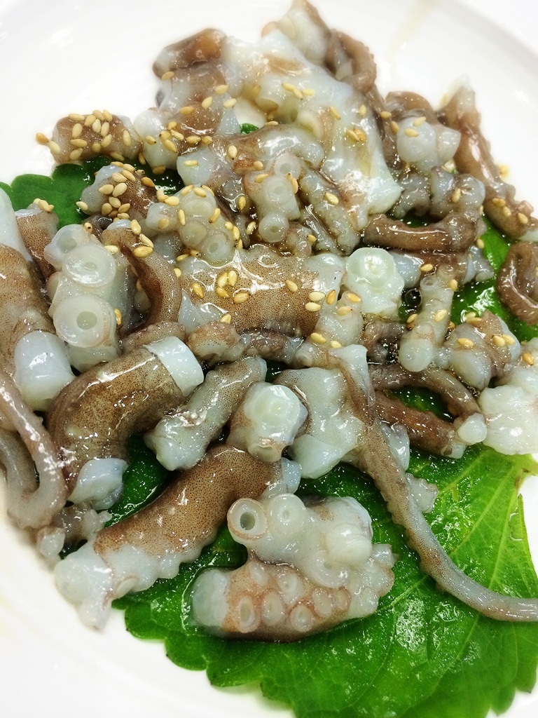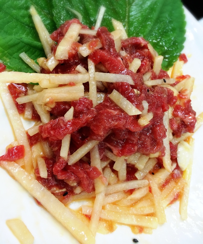 韓国 生モノ編! 2014.09.18 はい! 韓国に来たら 生きた生タコをたべるのが楽しみ!な、わたし。笑 胡麻油でいただく生タコ! 追加で二皿いただきました。 生レバー。 日本では、いただけないので、ここぞとばかり食す!が私。 ユッケ。 ユッケと生ジャガイモがマッチして、ススム~。 はい!大好物のケジャン! 味噌の部分は、白米と韓国海苔でまぜまぜして食べます。 韓国にくると、ずっと食べているような。