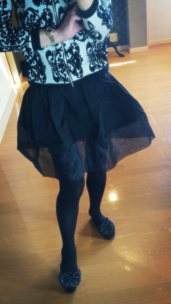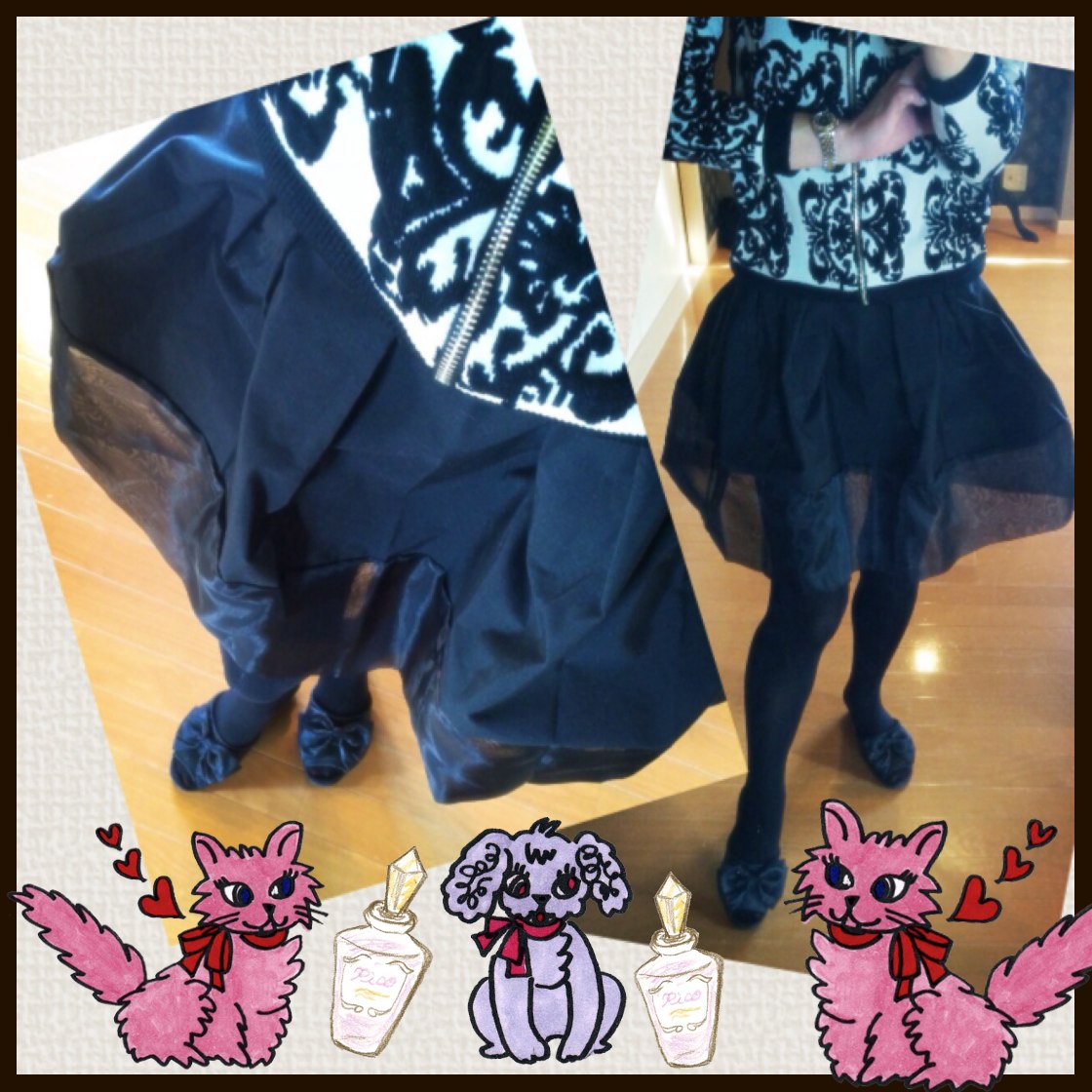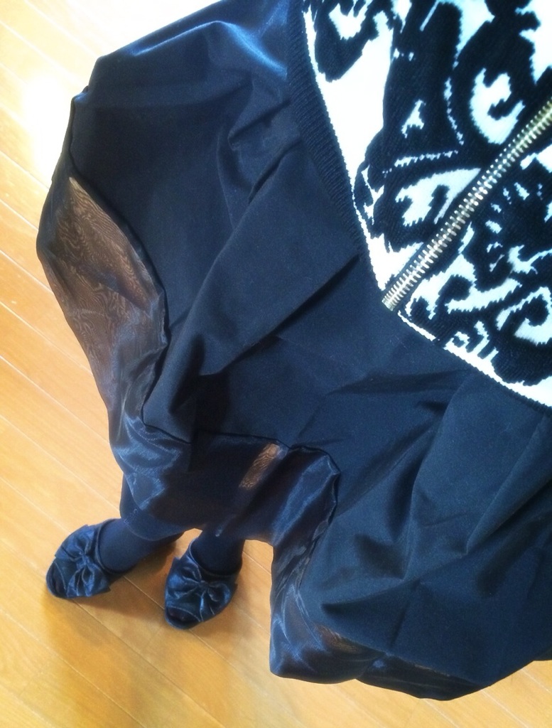 ポワンと感が好き! 2014.12.09 タフタ素材ならではの ポワンとした感じがたまらない(o^^o) タフタ素材とオーガンジー素材のミックススカート〓 形状記憶!笑 今日は、こんな感じで子供たちの参観日に行ってきました(* – *)