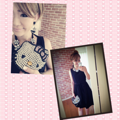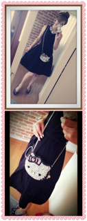 涼しい生地のシャカシャカしたブラックワンピースに、お気に入りのキラキラクラッチ!