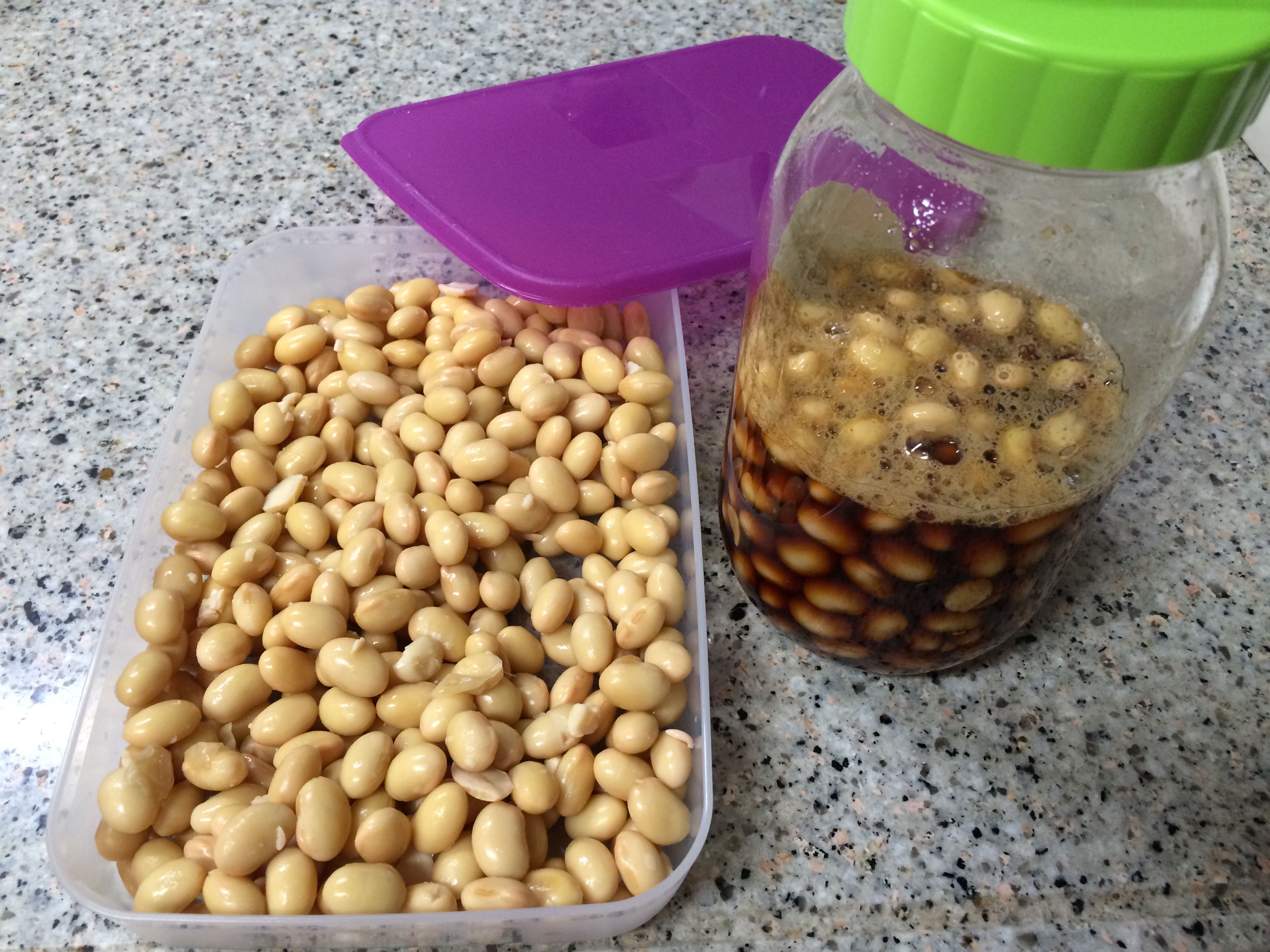 美容と健康に 2015.05.22 午前中に、復習した天然酵母パンが焼けました。 やっぱり、ふわふわ、もっちもち。 明日の朝食パンにしたいと思っています。 夕方から、二人の子供の習い事の送迎だったので、ケーキを作る時間がなくなってしまったのが残念です。 先ほど、圧力鍋を使って大豆を煮て、半分はビンに移して 美容と健康に黒酢、黒糖を加えて一晩おきます。 これ、私のストックフードです。 朝、サラダと一緒につまみます。 残りの大豆はいつものように冷凍保存します。 スピード料理に役立ちますよ。
