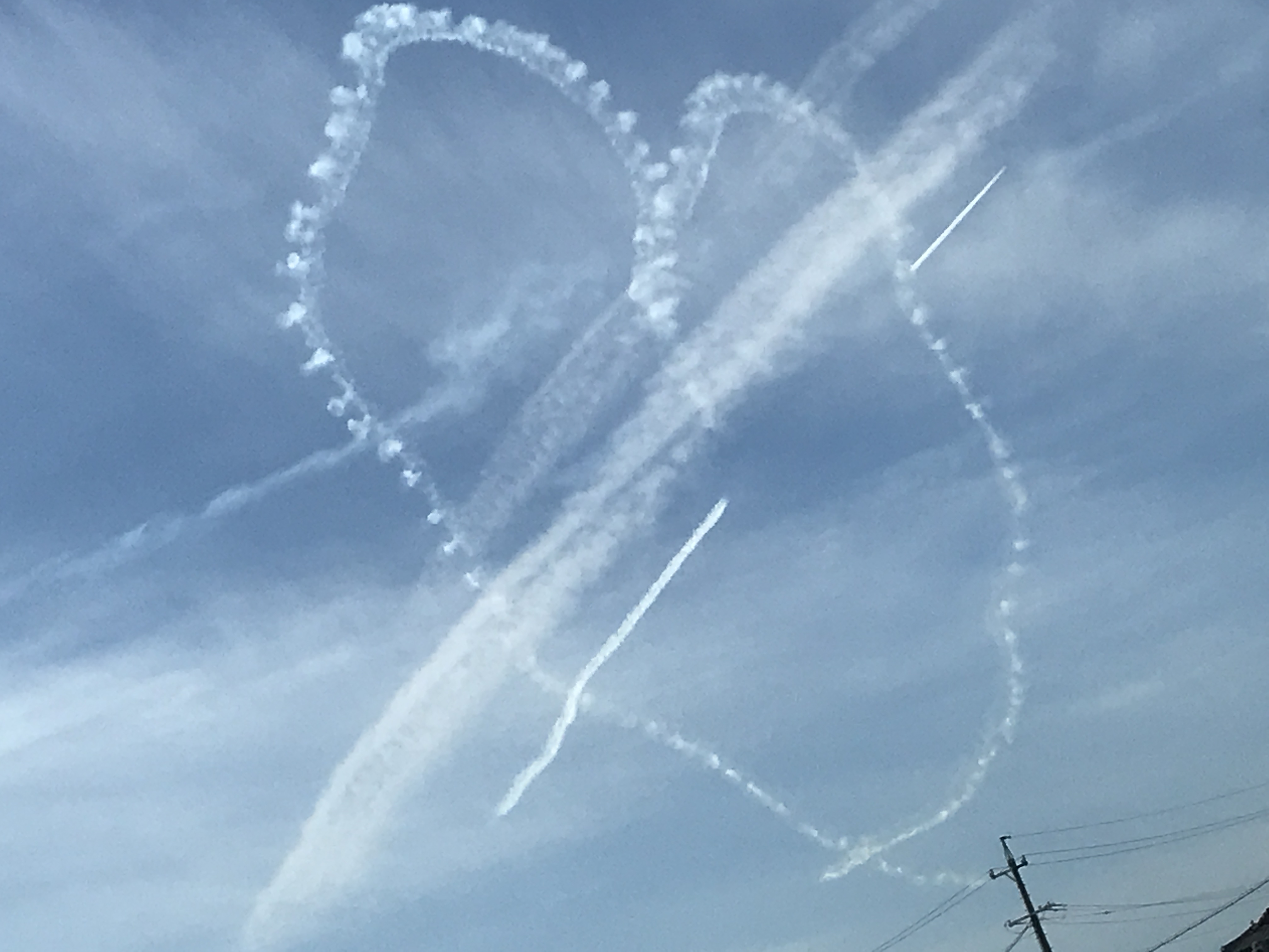 航空祭~各務原市~ 2018.11.19 お天気に恵まれた昨日は、各務原市で航空祭がありました。 栄に出かける前に、パチリ!! 空にゆっくり書かれるアート! 素晴らしいです! 昨日のお買い物は、ナチュラルコスメのクレンジング・ハンドメイド用にビーズを少々。。。 布染め花教室では、アクセサリーを取り入れたレッスンのコースもあります。 ビーズやアクセサリー金具を探しにいろんなところに出かけています。