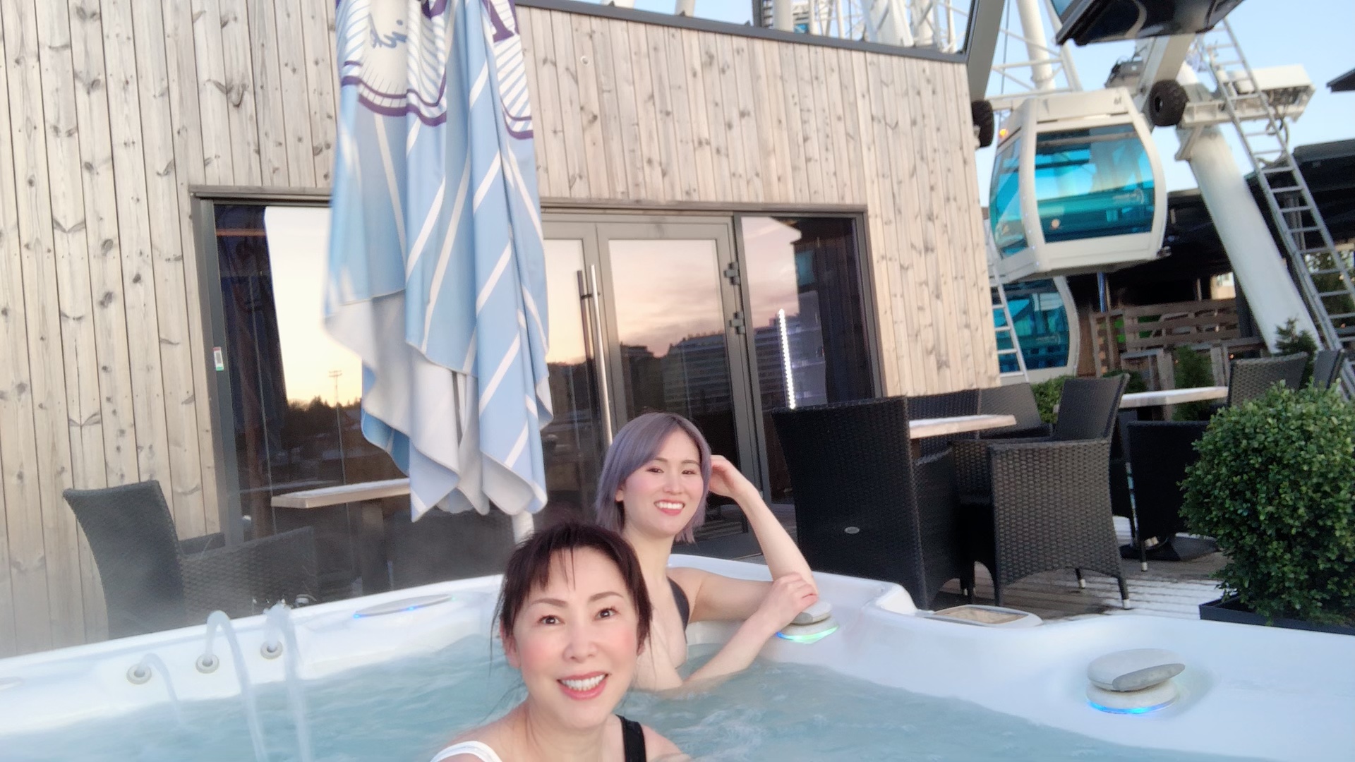 空飛ぶサウナは、普通の観覧車が1つだけサウナになっているものです。